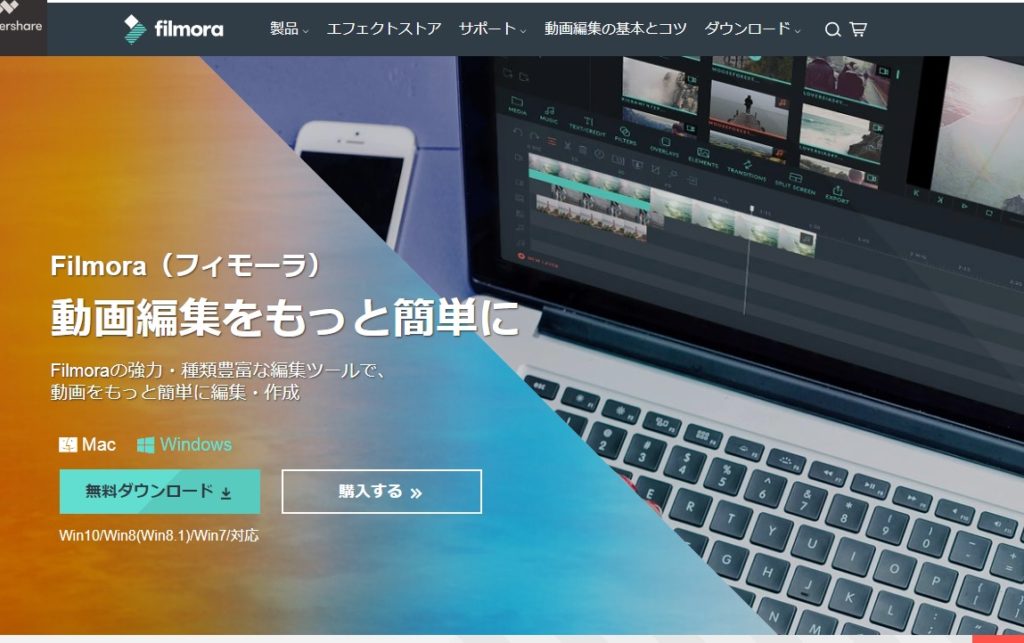 それに変わって人気なのが「Filmora」(フィモーラ)」です。こちらも最初はお試しも兼ねて無料で体験できますが、